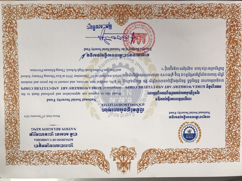 캄보디아 감사장(NSSF)